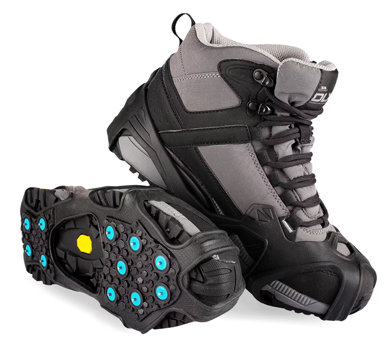 Gediget halkskydd för hela skosulan med slitstarka dubbar i hårdmetall.
