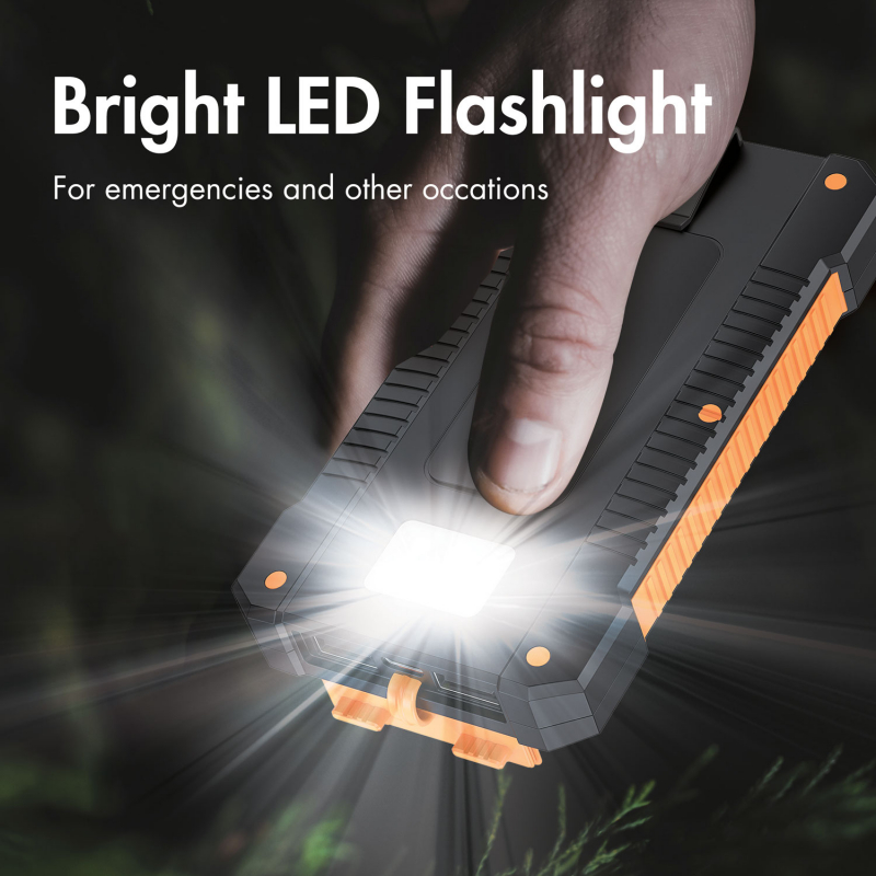 LED-indikator: Grön LED för solcellsladdning; Blå LED för laddning av enhet och batteristatus