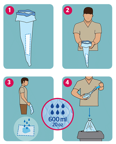 Urinpåse för män är till för att användas när det inte finns någon toalett i närheten.